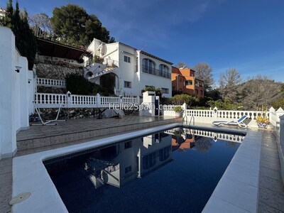 Accessed via private electric gates, this beautifully presented four-bedroom villa is located in the highly sought-after village of Ador, offering spacious and flexible living along with stunning views of the surrounding mountains, the mediterranean sea and private pool area.